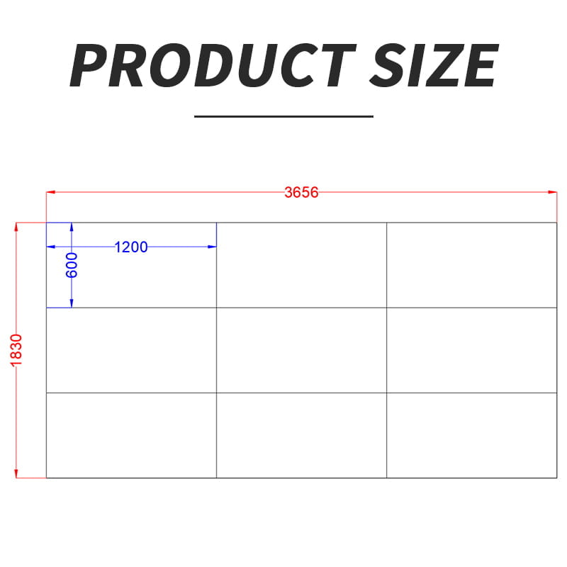 1. There are 9 pcs of 0.6*1.2m LED lamps included, and the size is 1.2*0.6m.